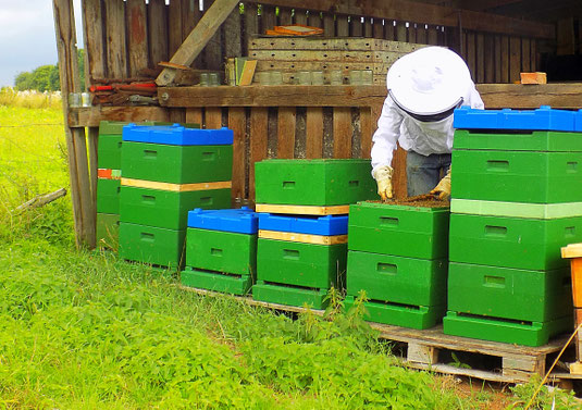 Die Imkerei ist seit 2010 Teil der Farm und umfasst aktuell etwa 6 Bienenstöcke (Völker).